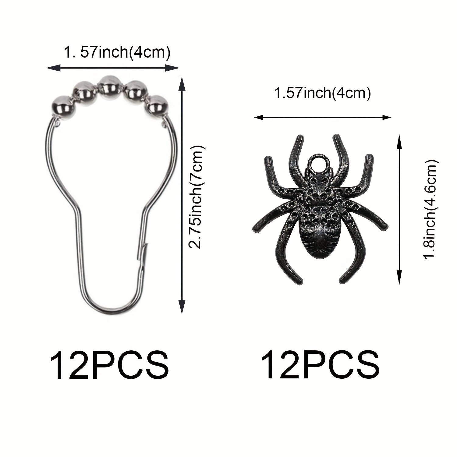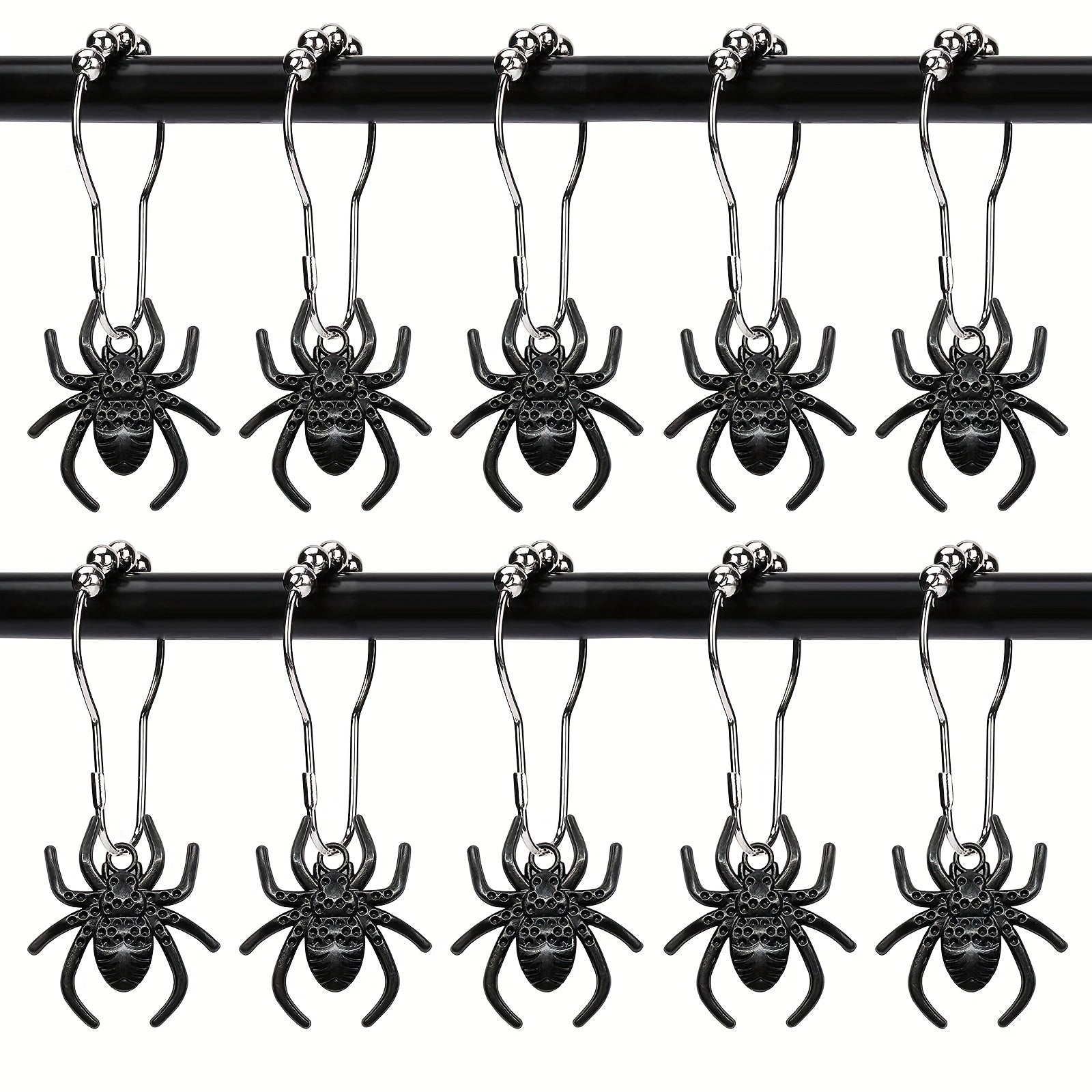 12pcs Spider Pendant Shower Curtain Hook, Curtain Hook With Rolling Bead, Rustproof Shower Curtain Hook For Bathroom Curtain Rod, Bathroom Accessories, Halloween Decorations