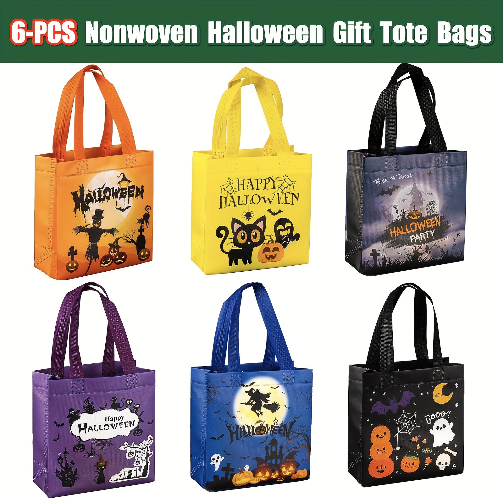 6pcs, Non-Woven Halloween Treat Bags, Trick Or Treat Bags Party Goodie Tote Bags Treat Bag With Handles For Halloween Party Favor Supply, Halloween Decorations, Small Business Supplies, Cheapest Items Available, Sale