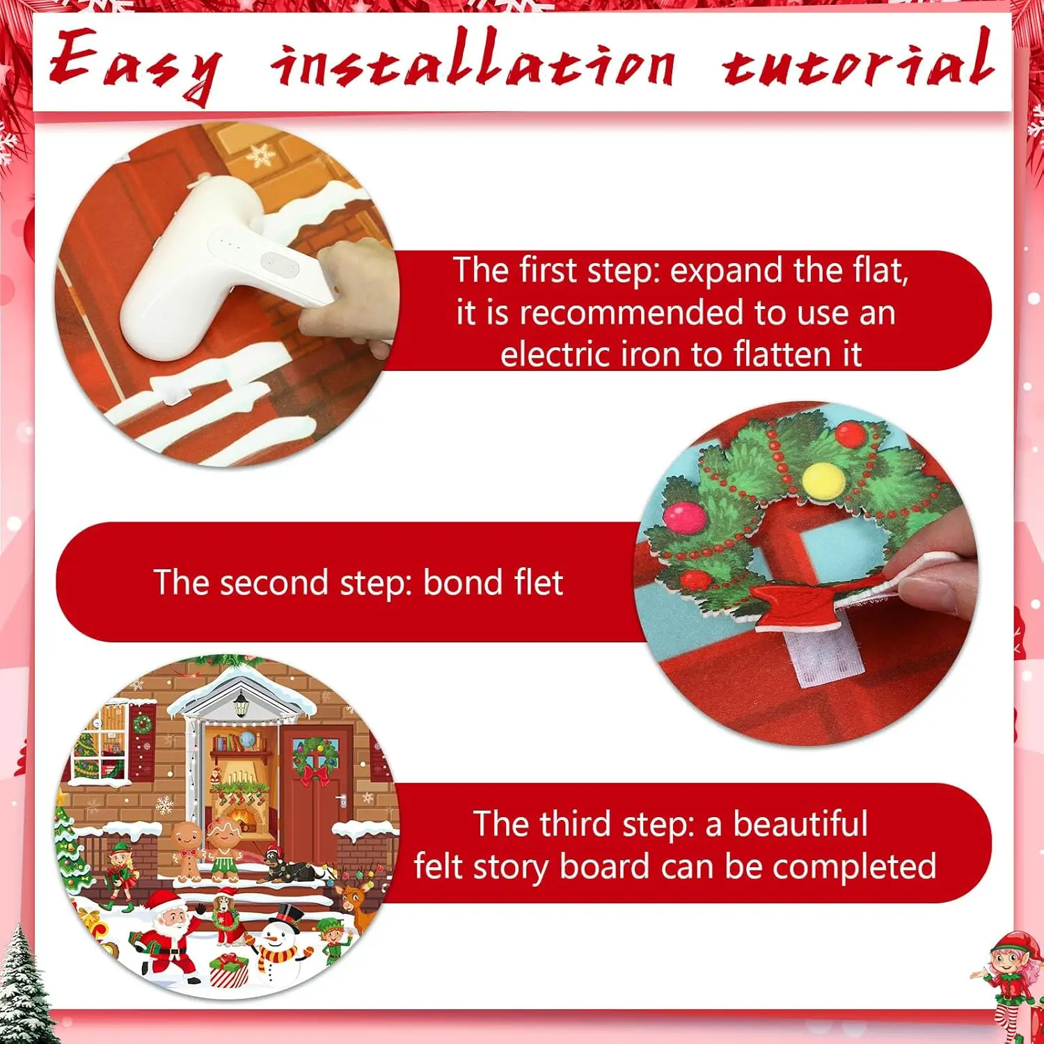 Christmas Felt Story Board Set Detachable Ornaments Wall Decor House Crafts DIY Learning Interactive Play Kit for Holiday Xmas